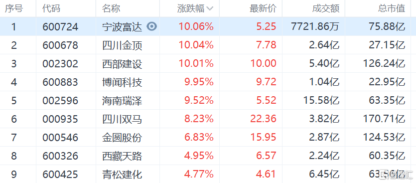 寧波富達(dá)、四川金頂和西部建設(shè)等強(qiáng)勢漲停。